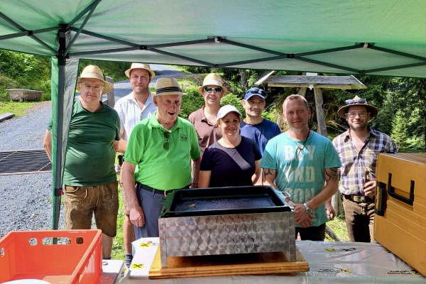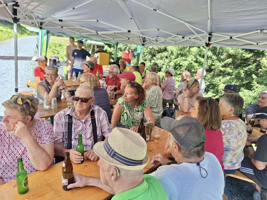 Bei strahlendem Sonnenschein ging es mit der neuen Streubödenbahn rauf zum Kogel wo unser Bergführer Michael Kafka uns einen Einblick in die umliegende Bergwelt gab. Die 31 Wanderer machten sich nun auf, wir gingen entlang der Wildalmen runter am Griesenboden vorbei rüber zum Jagersteig wo wir unsere erste Jausenstation hatten. Nach der Stärkung ging es weiter bis zur Scharzhäusl Alm die im Besitz der Familie unseres Obmannes Leonhard Schwaiger ist. Dort erwartete uns ein kleines Spiel und eine Grillerei. Wir danken allen Marketenderinnen und Obmännern fürs dabei sein und unseren eigenen Kameraden für die tatkräftige Unterstützung.